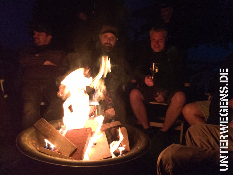 Nach der Tour hatte ich vom Mittag an frei und haute mich erstmal in die Sauna (ja, so etwas gab es da auch). Mit Stiefeln, Musik vom iPhone und einer Tasse Earl Grey saß ich also auf der Bank und schwitze 3-4 Touren vor mich hin – herrlich! Abends gab es dann gemeinsames Abgrillen mit „Hoch die Tassen“ und Party-Party-Party.