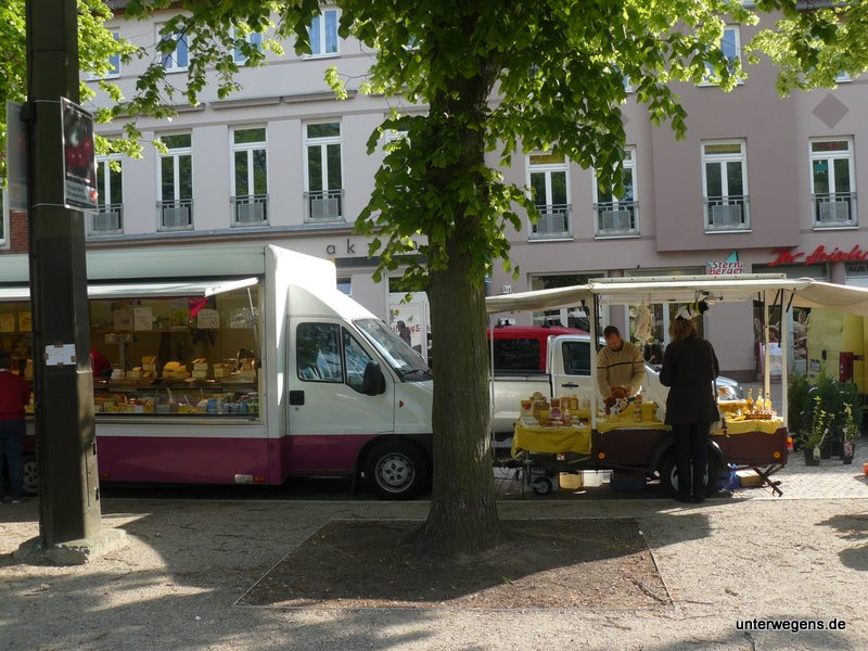 Nachts hat es dann zu regnen begonnen. Morgens hört es rechtzeitig auf und das noch nasse Zelt wird auf den Koffer geschnallt. Für heute habe ich mich zu einer Küstentour entschlossen. Also geht der Weg über Neubrandenburg weiter nach Malchin, Teterow und Rostock. Die Mittagspause in Warnemünde gefällt mir dann wieder sehr gut. Buntes treiben auf der Promenade bei Sonne und mit vielen Leuten.